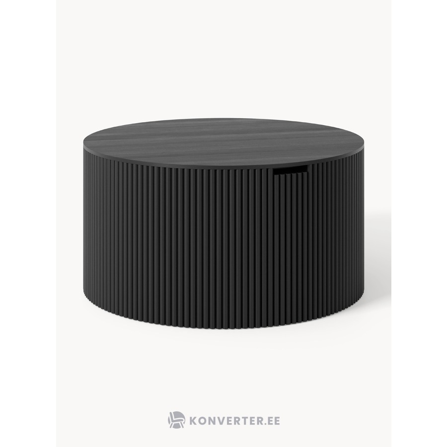 Juodas apvalus medžio masyvo kavos staliukas (Nele)
