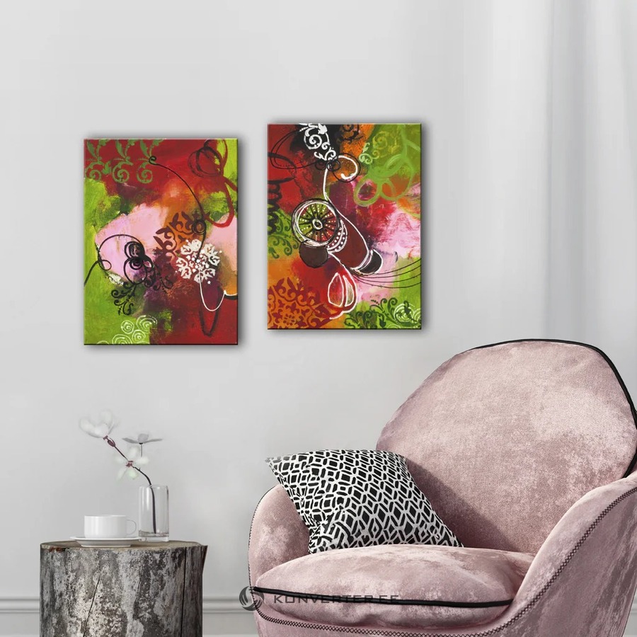 Rankų darbo paveikslas „Mozaic Red“, 2 vnt. (Malerifabrikken), 30x40