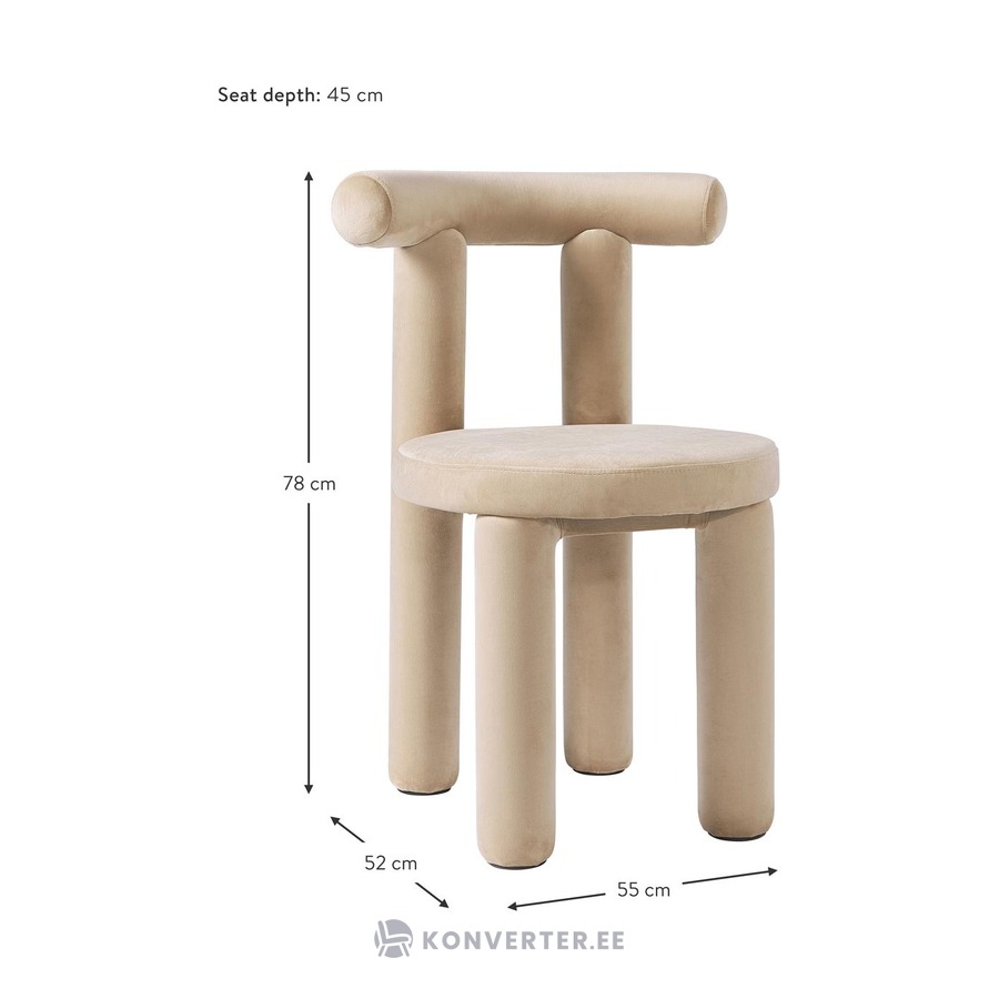 Smėlio spalvos aksominė kėdė (calan) su kosmetiniu defektu