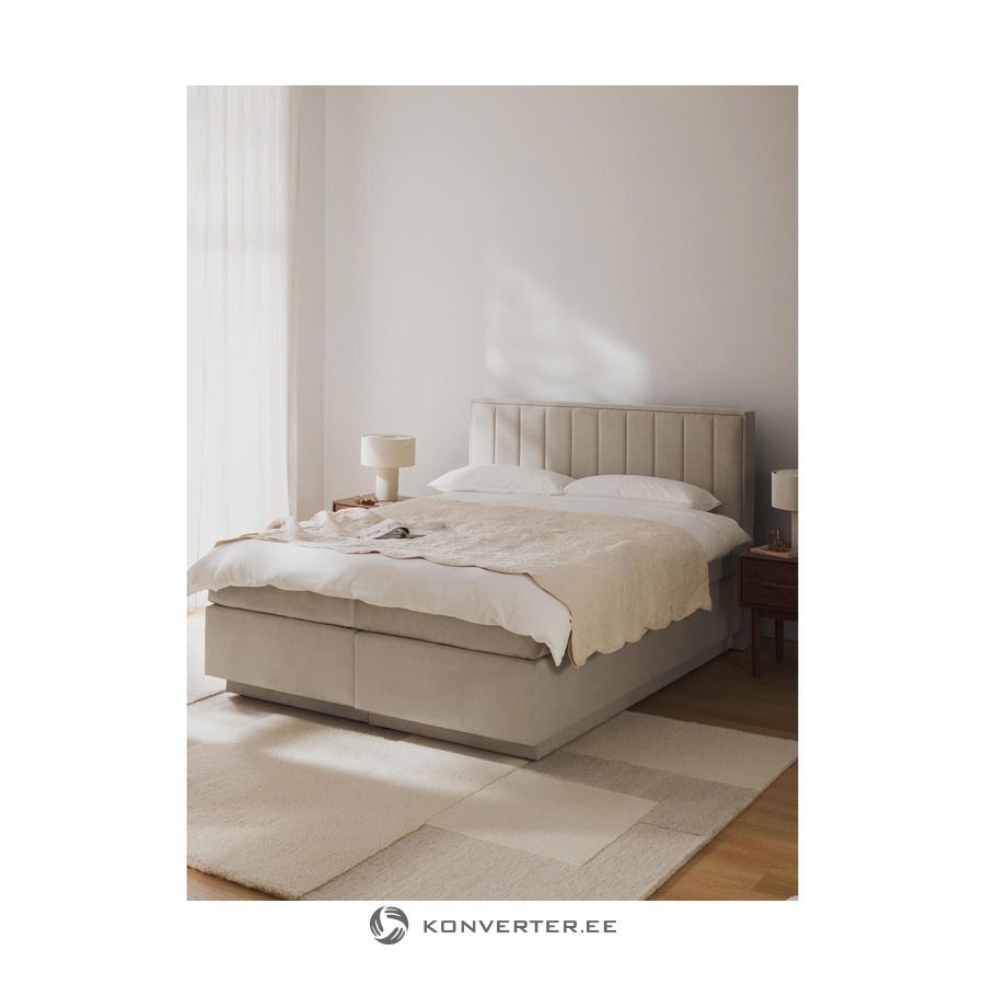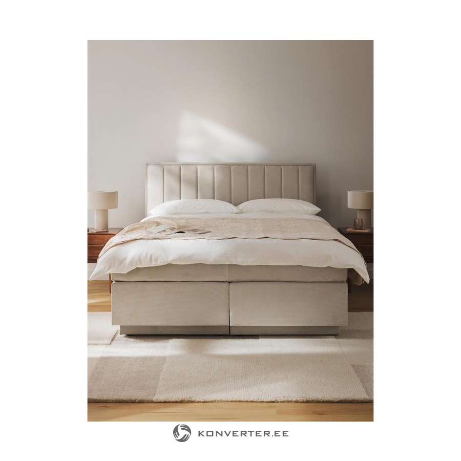 Šviesiai smėlio spalvos kontinentinė lova su daiktadėže (Livia) 180x200